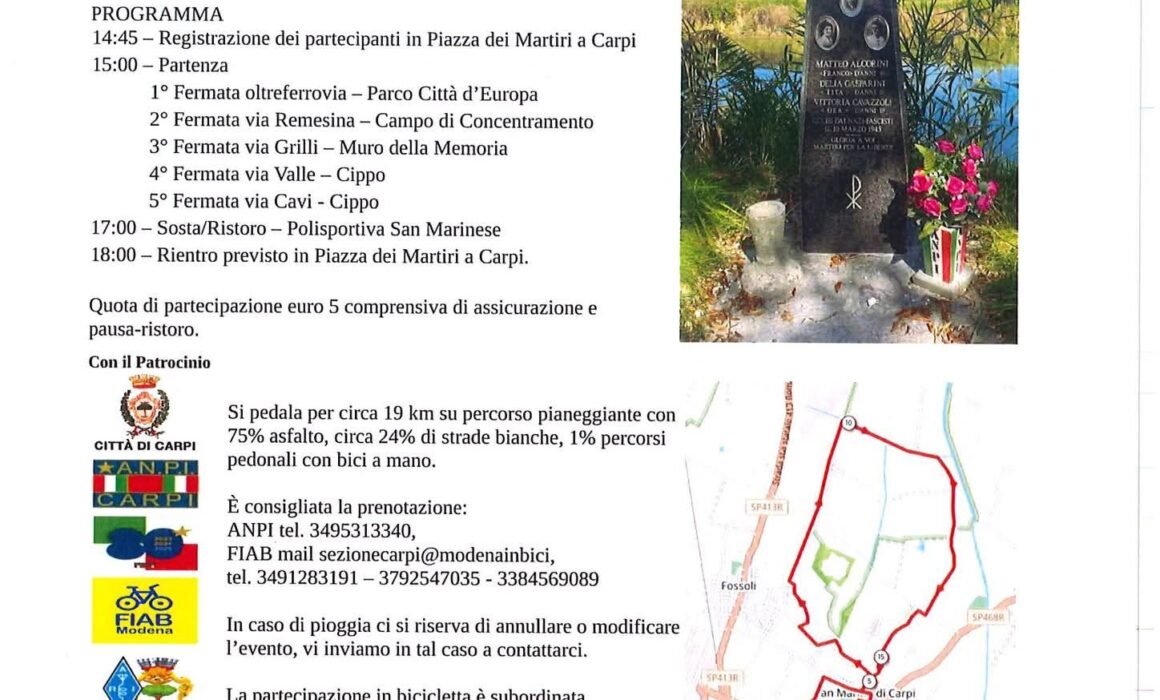 Carpi, 26 aprile 2026 – PEDALATA DELLA MEMORIA A CARPI – ritrovo ore 14:45 in Piazza dei Martiri