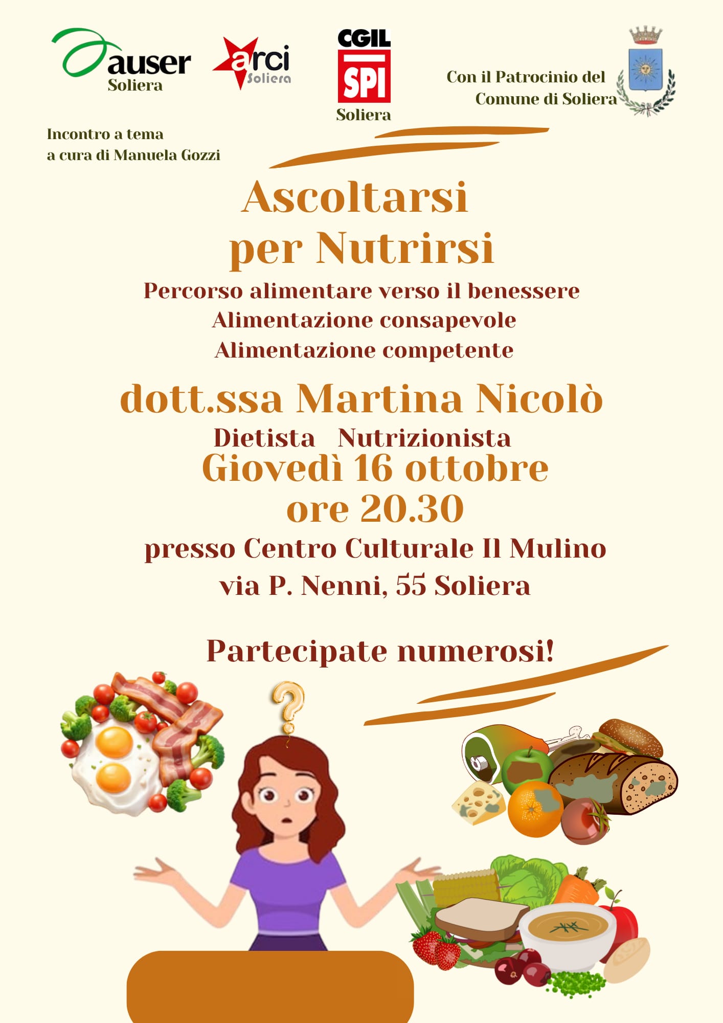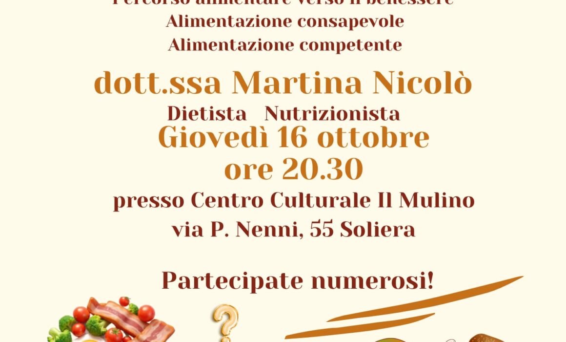 SOLIERA, GIOVEDI’ 16 OTTOBRE 2025 ORE 20:30 “ASCOLTARSI PER NUTRIRSI” INIZIATIVA PROMOSSA DA SPI CGIL, AUSER E ARCI DI SOLIERA
